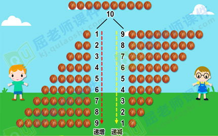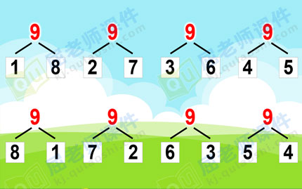 查看课件:大班数学课件《10以内数的分解与组成》PPT课件教案学具 一、活动目标 1、知道10以内数的多种分法,理解10以内数的分解与组成的递增、递减、互换关系。 2、能用符号或游戏进行10以内数的分合练习。 3、学会在生活中运用数的分解与组合。 二、活动准备 PPT课件,数字卡片1-10若干,玩具若干,在地面上画圆圈(每组两个),记录纸和笔,音乐《找朋友》。