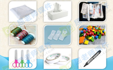 查看课件:中班科学课件《自制降落伞》PPT课件+教案 活动目标: 1、认识降落伞的伞面、伞绳、重物三部分结构,感知塑料布、纸巾报纸等不同材料对下落速度的影响。 2、尝试用剪、贴、绑等方式制作简易降落伞,比较伞面大小、材料差异对下落速度的影响。 3、在制作和实验中体验动手的乐趣,感受科学探究的成就感。 活动准备: 物质:伞面,塑料布(轻便)、纸巾(柔软)、报纸(稍重)各1张;伞绳,细线绳4根(20厘米);小夹子、木质积木;安全剪刀、双面胶、记号笔;实验记录表、“快”“慢”标记贴纸、拍照设备;降落伞成品、跳伞运动视频片段。 经验:幼儿有使用安全剪刀、粘贴材料的经验;教师提前测试材料安全性。