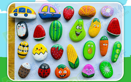 活动过程: 1、活动导入 今天老师给你们带来了几幅漂亮的画,接下来我们就一起欣赏吧! 2、出示石头画图片请幼儿欣赏激发幼儿的兴趣。 师:你们知道这些漂亮的画是怎样画出来的吗?你们一定想不到这些漂亮的画是用石头做的吧。今天我么就一起来学习有石头做的吧! 3、向幼儿介绍绘画要用到的材料。