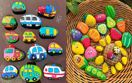 查看课件:中班美术课件《创意石头画》PPT课件+教案+视频 活动目标: 1、初步欣赏石头画呈现的立体美。 2、能在石头上简单自主做画。 3、体验在石头上做画的乐趣。 活动准备: PPT课件、丙烯马克笔、小石头等。 活动重难点: 重点:理解、欣赏石头画呈现的立体美。 难点:根据自己的意愿,能在石头上简单自主做画。