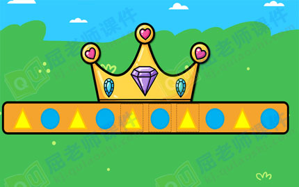 3、操作活动:(装饰头饰)启发幼儿依样接着给图形排序。 我们再来看看第三个盒子里的礼物是什么?(一张请柬) "上面写得是什么?我来读一下。"老师读请柬,"小朋友今天图形国王邀请你们去参加一个舞会,但是你们要打扮一下自己。"教案来自:屈;老师教;案网."每个小朋友要按照图形有规律的装饰自己的头饰。戴上头饰才能进去参加舞会。" "小朋友,你们想去参加舞会吗?"(想) 老师出示为幼儿准备的操作材料,有头带、各种图形,请幼儿按照图形规律依样接着有规律的排序。 老师:"好,我们开始做好,做好了,请双面胶帮忙。"