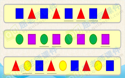 查看课件:中班数学课件《按规律排序》教案学具PPT课件 活动目标: 1、能根据图形的排列规律进行排序。 2、培养幼儿初步的观察与比较能力,提高幼儿的判断推理能力。 活动准备: 1、各种图形若干,胶水 2、幼儿操作纸